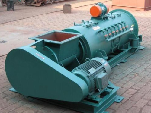 臥式粉塵加濕機工作時,定量的生料粉由下料口流入攪拌槽中,經(jīng)若干個具有一定壓力的水(20kp)霧化灑向生料粉,由定性長度的軸經(jīng)攪拌均勻后,形成大小不等松散的球核,將整個攪拌機的攪拌時間分為三個區(qū)域,即霧化區(qū)、攪拌區(qū)、卸料區(qū)。這樣使料粉在充分濕潤又松散的狀況下完成它的工作后,迅速地轉(zhuǎn)入下道工序。