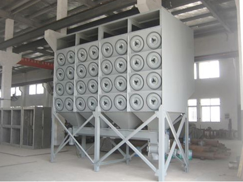 濾筒式除塵器工作原含塵氣體進(jìn)入除塵器灰斗后,由于氣流斷面突然擴(kuò)大及氣流分布板作用,氣流中一部分粗大顆粒在動(dòng)和慣性力作用下沉降在灰斗;粒度細(xì)、密度小的塵粒進(jìn)入濾塵室后,通過(guò)布朗擴(kuò)散和篩濾等組合效應(yīng),使粉塵沉積在濾料表面上,凈化后的氣體進(jìn)入凈氣室由排氣管經(jīng)風(fēng)機(jī)排出。濾筒式除塵器的阻力隨濾料表面粉塵層厚度的增加而變大。